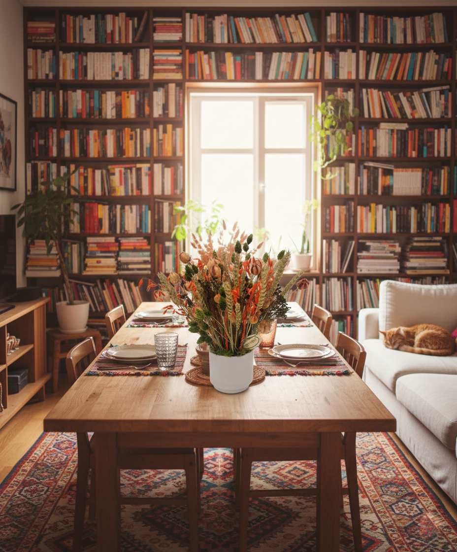 If you want to decorate your space with a big impressive dried flowers arrangement with mostly green color this arrangement of dried flowers is perfect.
