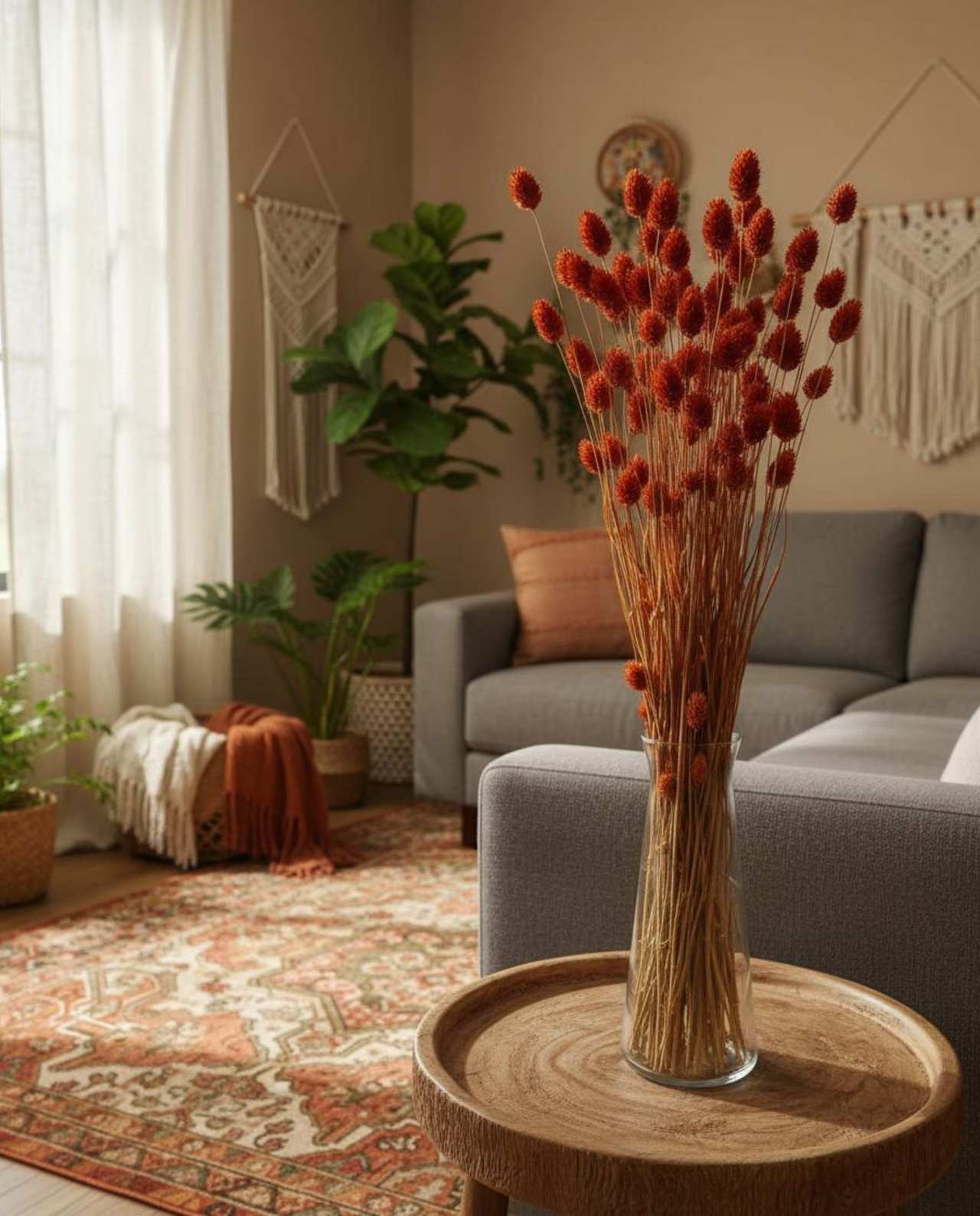 This exquisite dried floral bunch bring warmth, texture, and organic charm to any interior space while requiring no maintenance. Perfect for creating serene, nature-inspired environments that promote tranquility and well-being, our dried flowers maintain their stunning aesthetic for years. Transform your living space with these versatile natural arrangements that blend effortless beauty with timeless decorative appeal, bringing the gentle essence of nature indoors year-round.