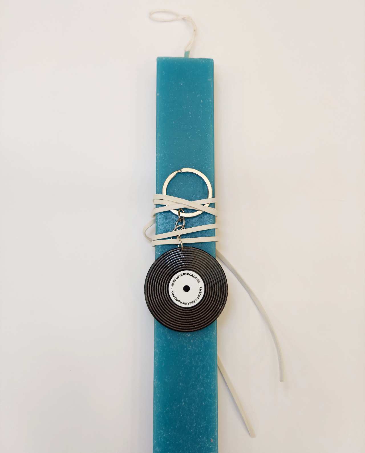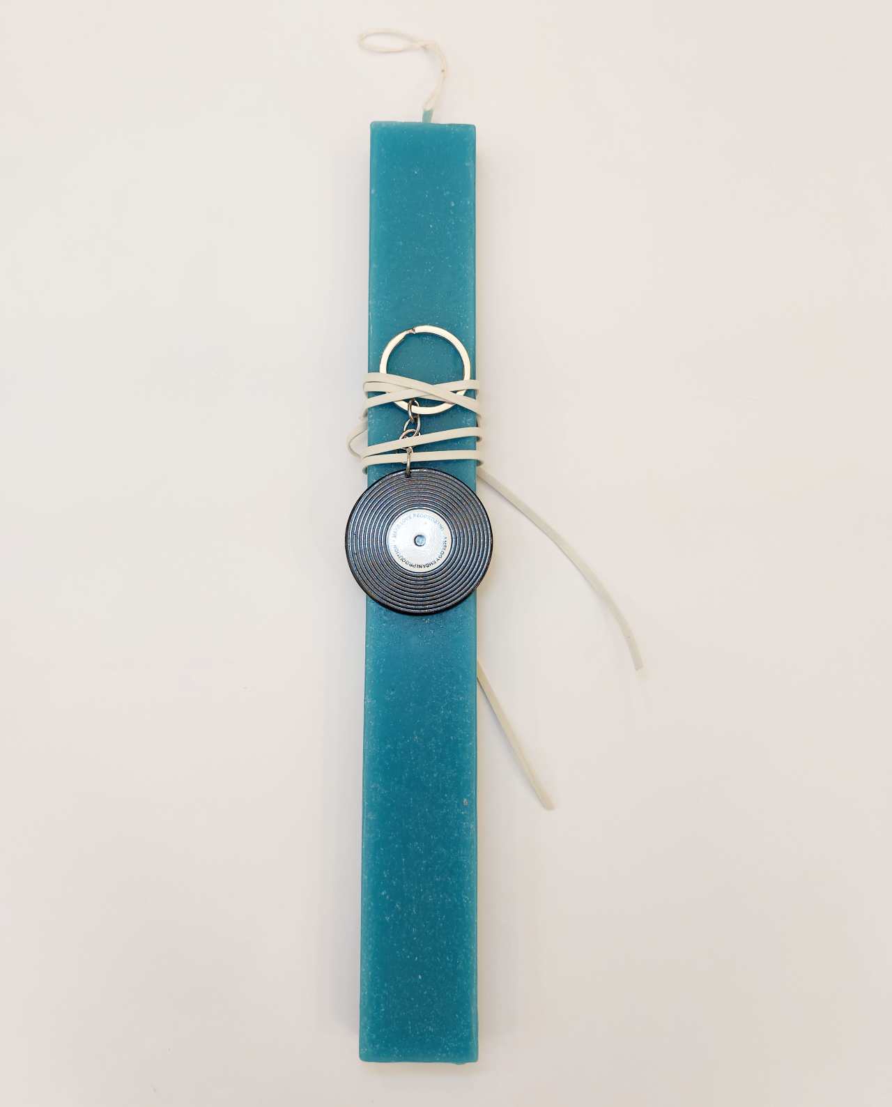 Greek Orthodox Easter Candle for Boys & Men — Teal with Vinyl Record Keychain