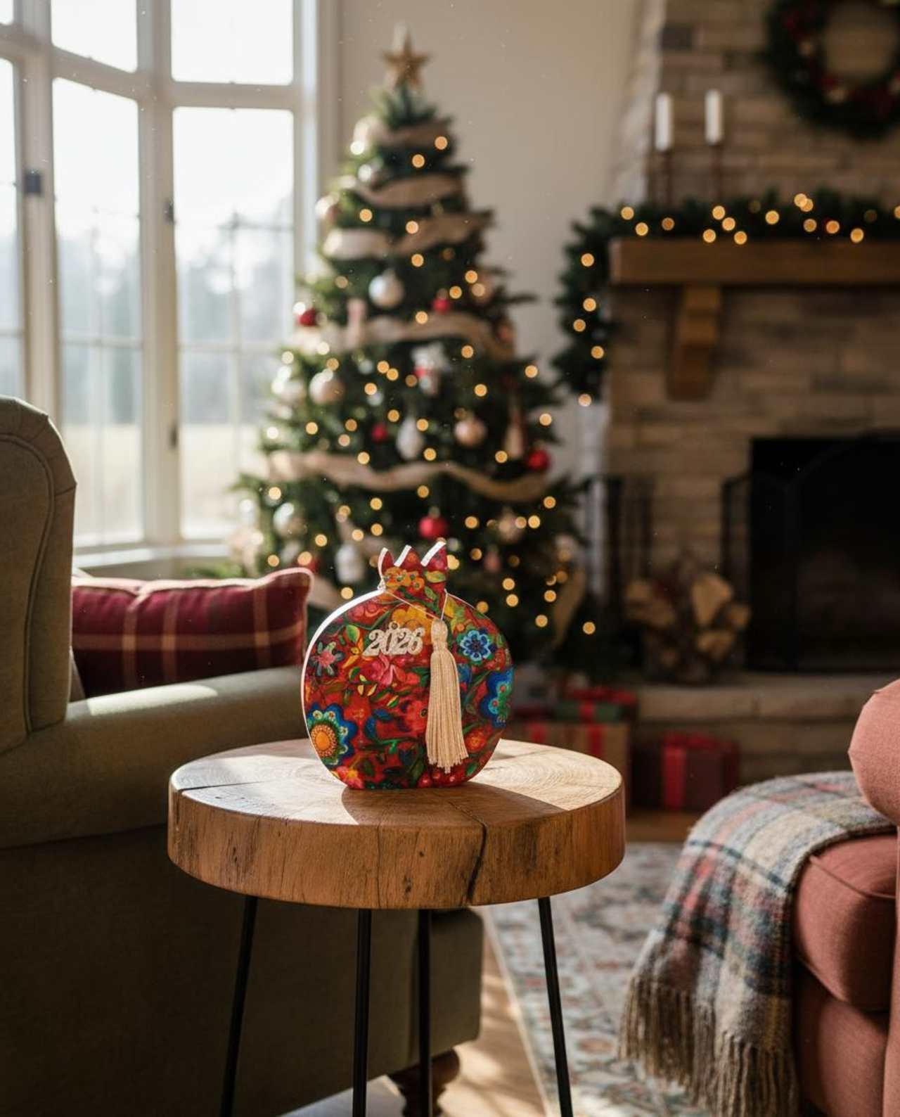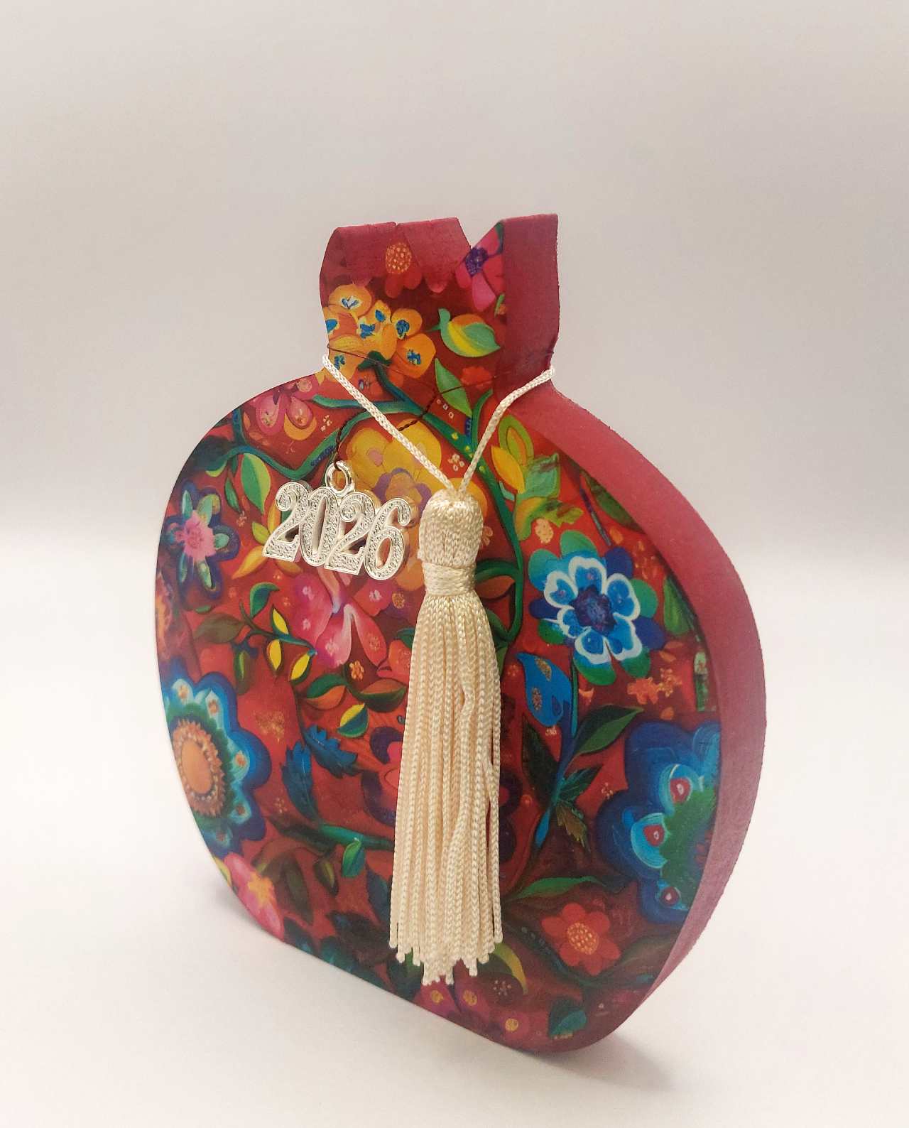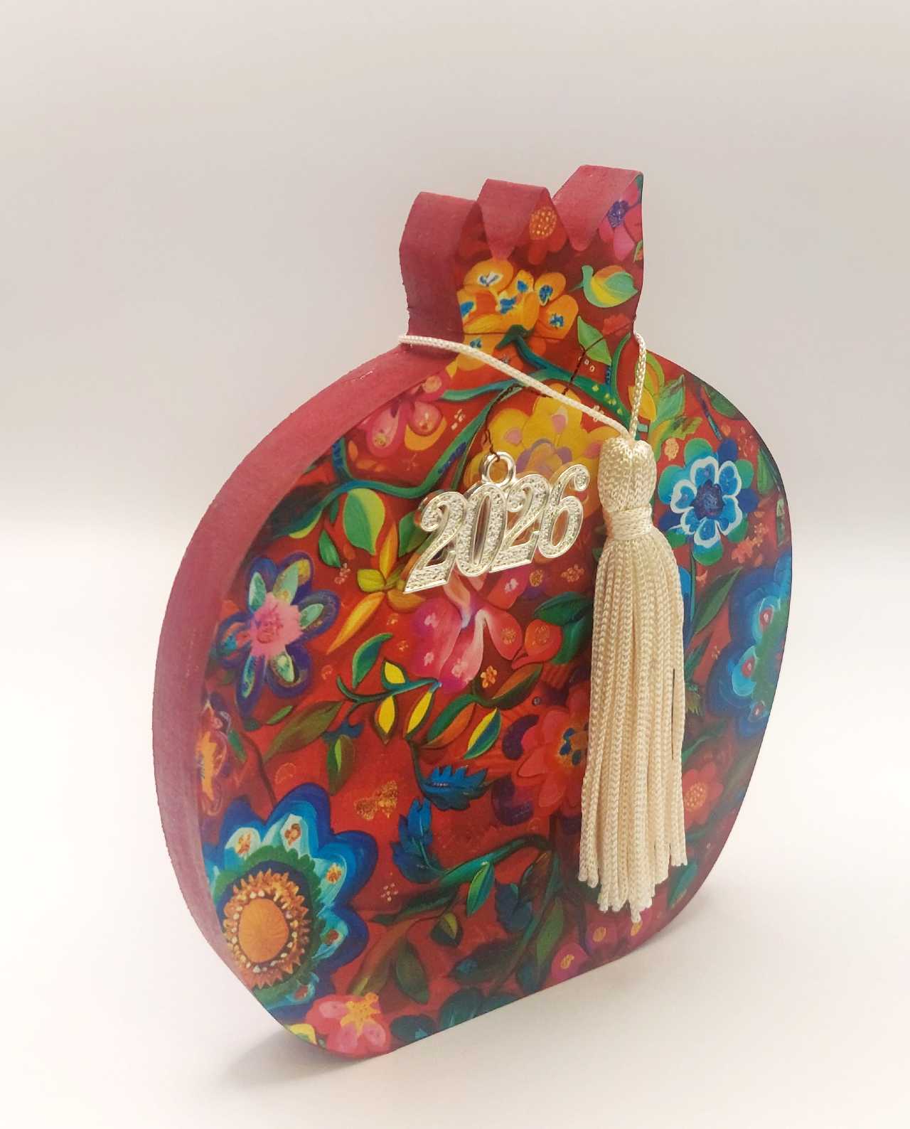 A wooden colorful pomegranate to have in your house as a lucky charm to welcome 2026 or to give away as a special gift to bring luck.