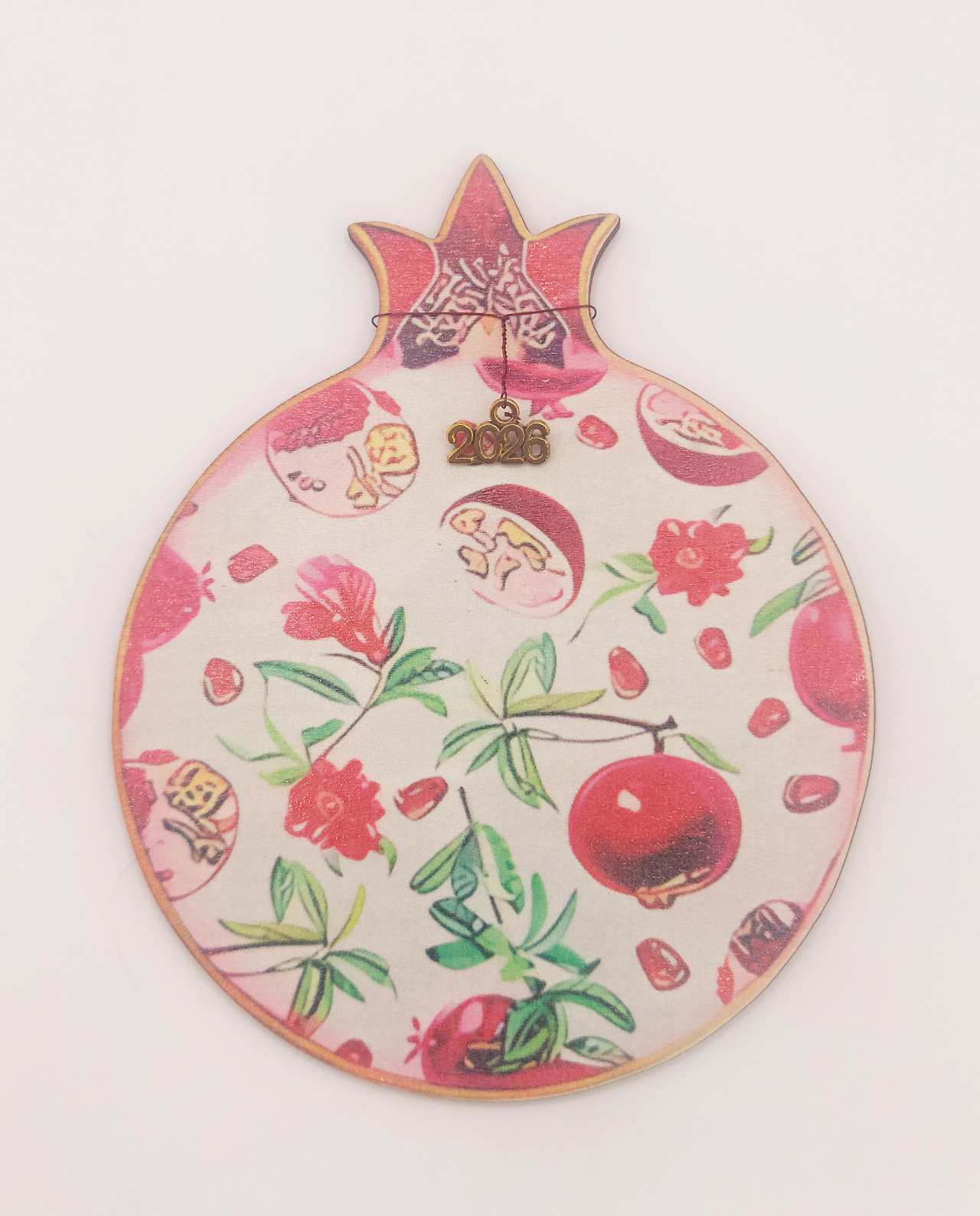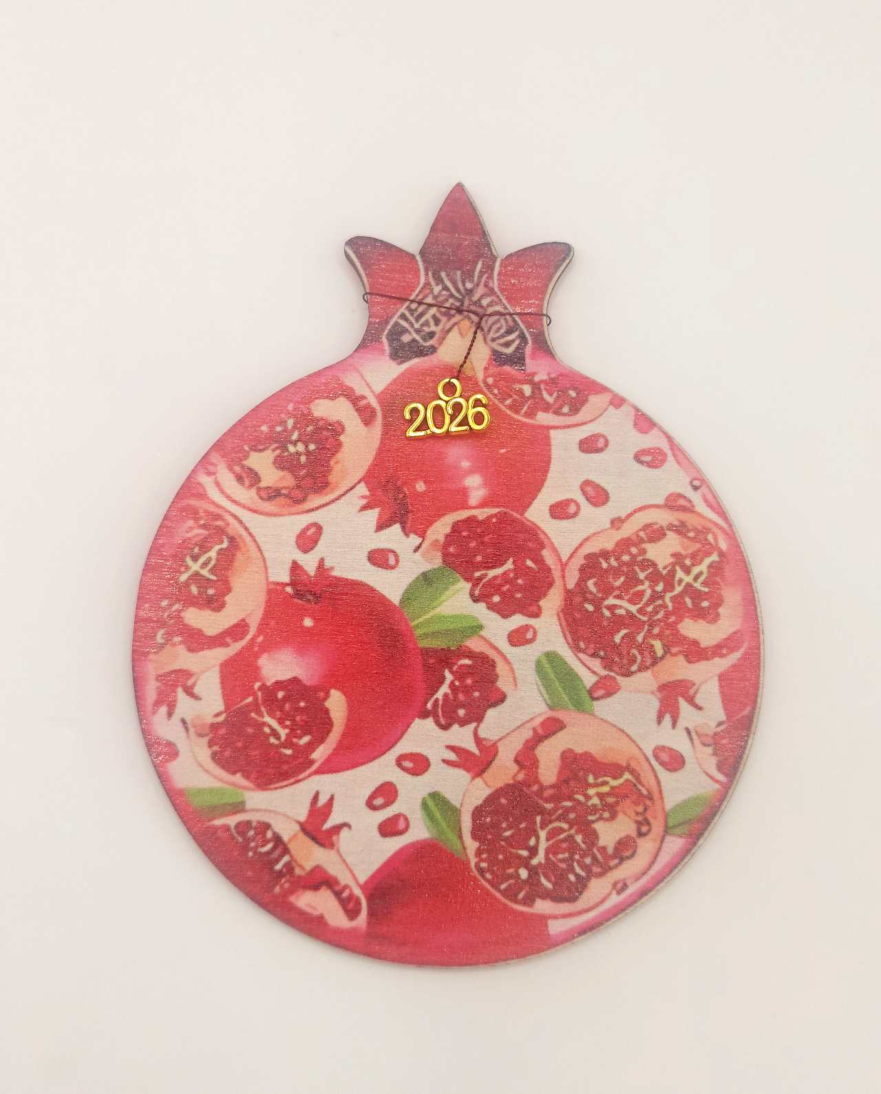A set of two wooden pomegranates 2026 with magnet to have in your kitchen as a lucky charm to welcome 2026 or to give away as a special gift to bring luck.