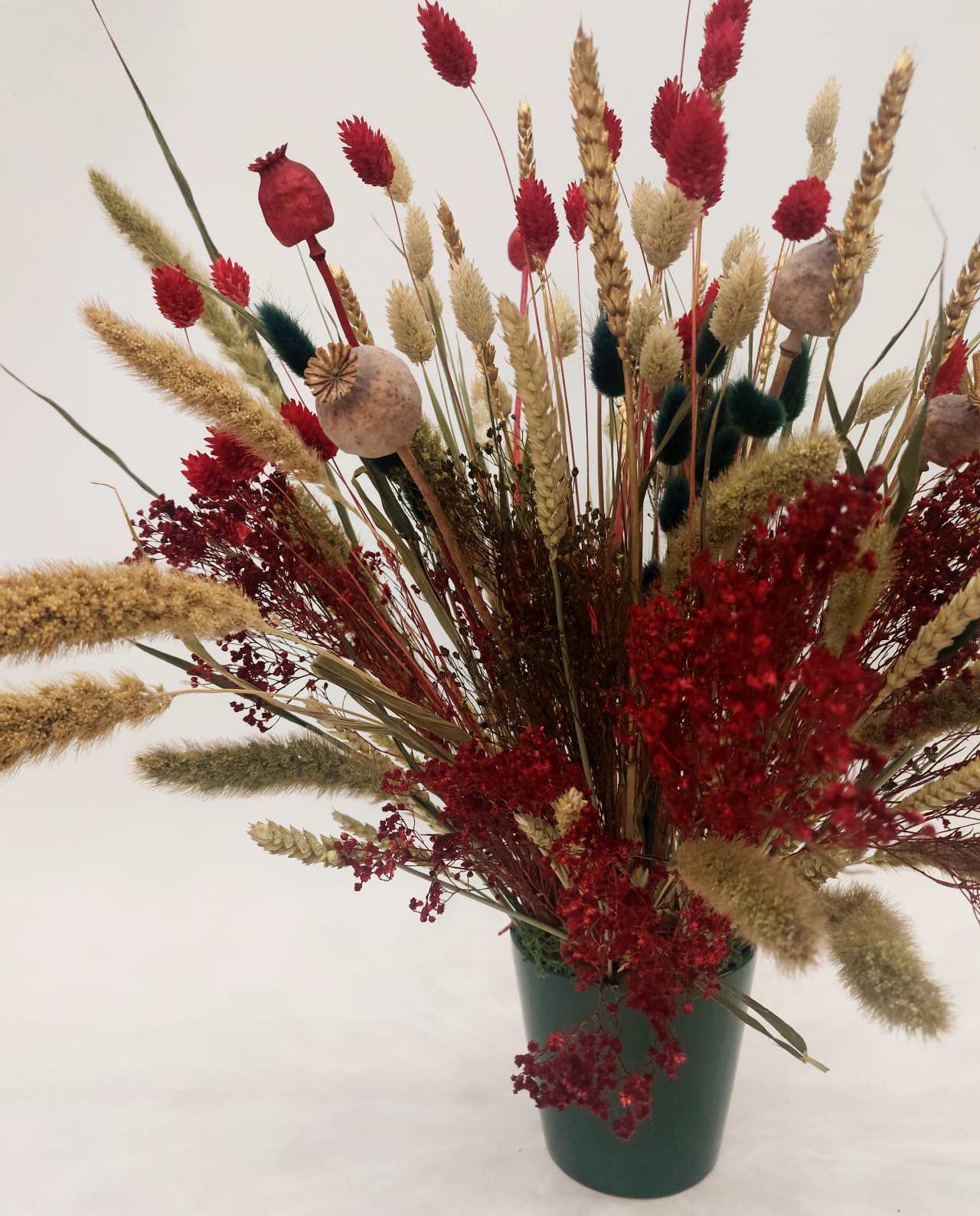 Χριστουγεννιάτικη Σύνθεση Αποξηραμένων Λουλουδιών Πράσινο Κασπώ