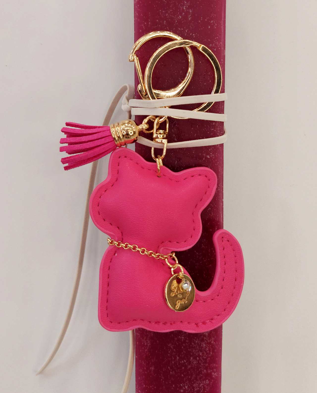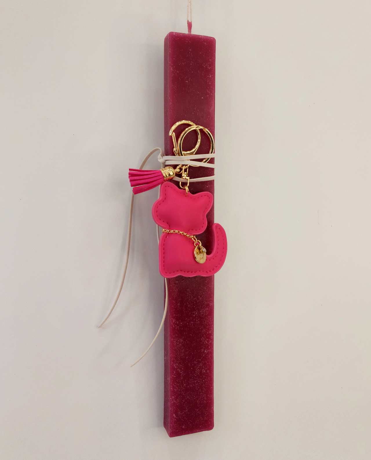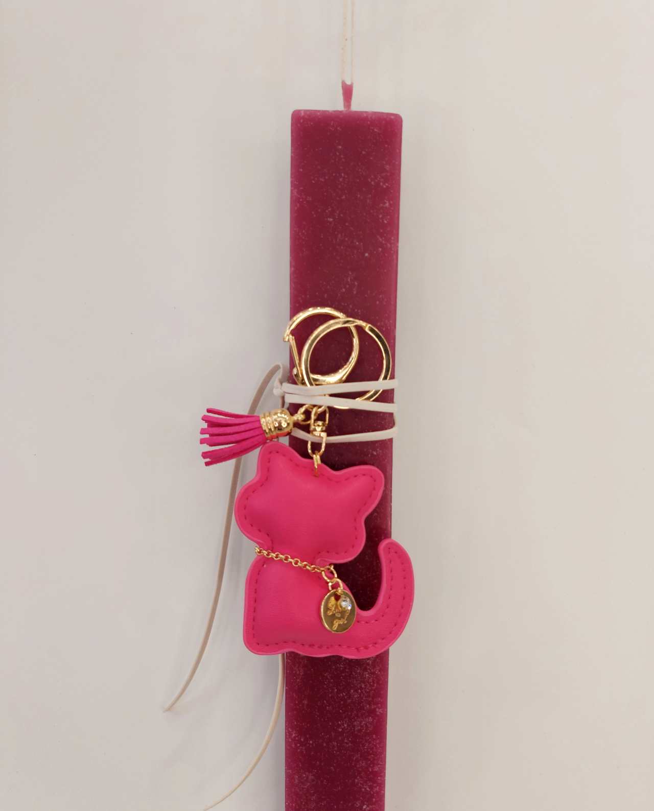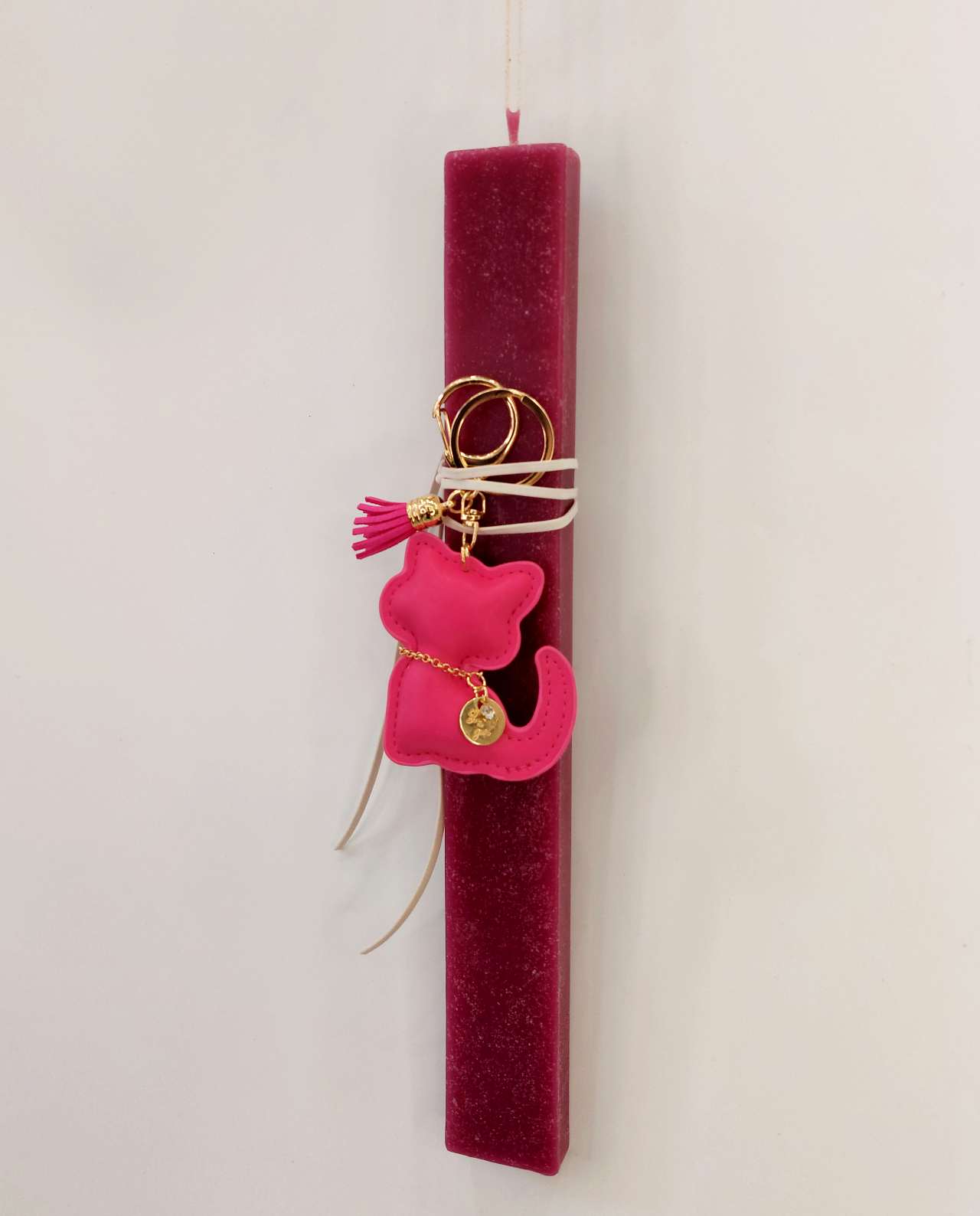 Πασχαλινή χειροποιήτη λαμπάδα με μπρελόκ γάτα. H ιδανική λαμπάδα για νονές. Χειροποίητο πασχαλινό δώρο για το βαφτιστήρι και αγαπημένα πρόσωπα.