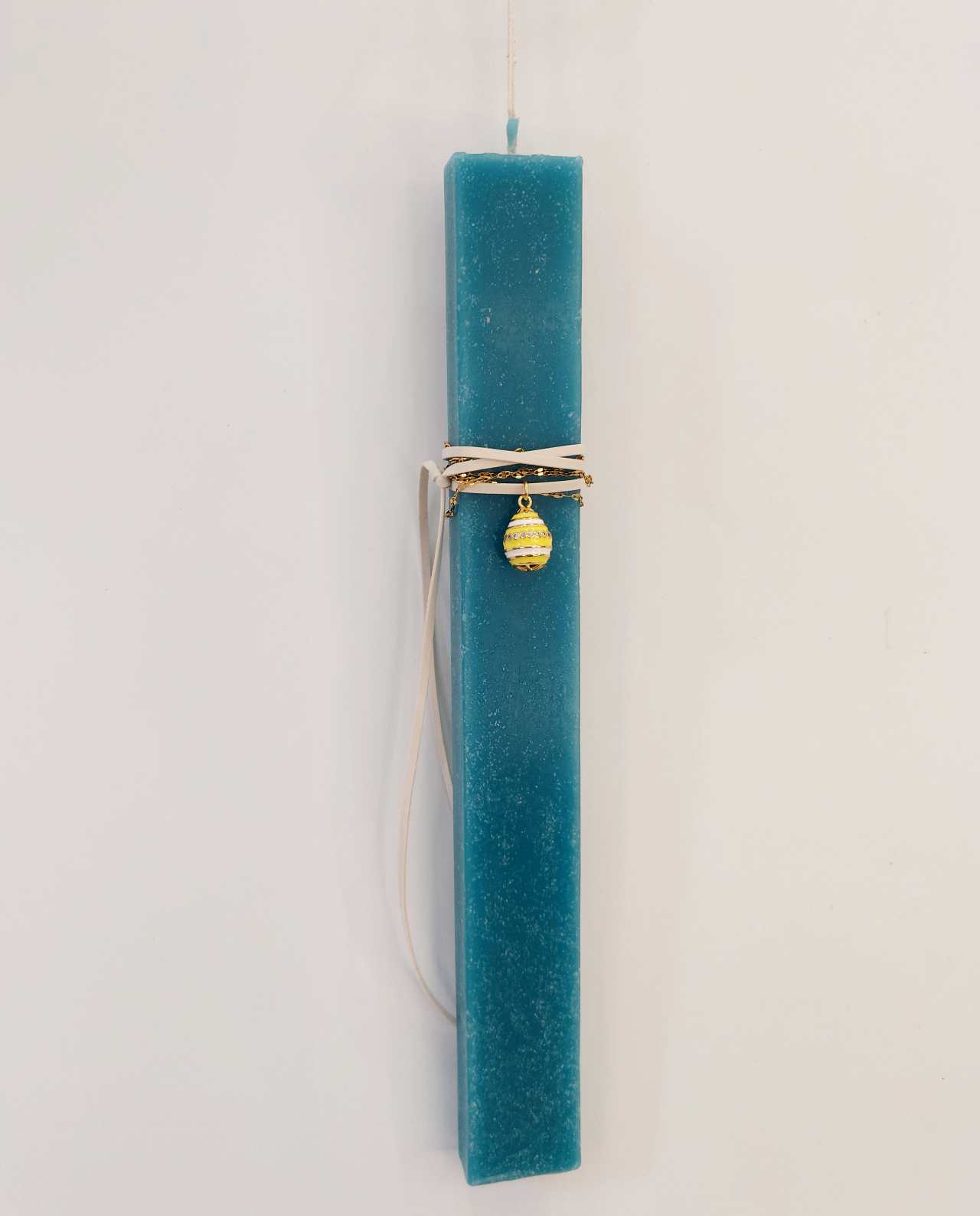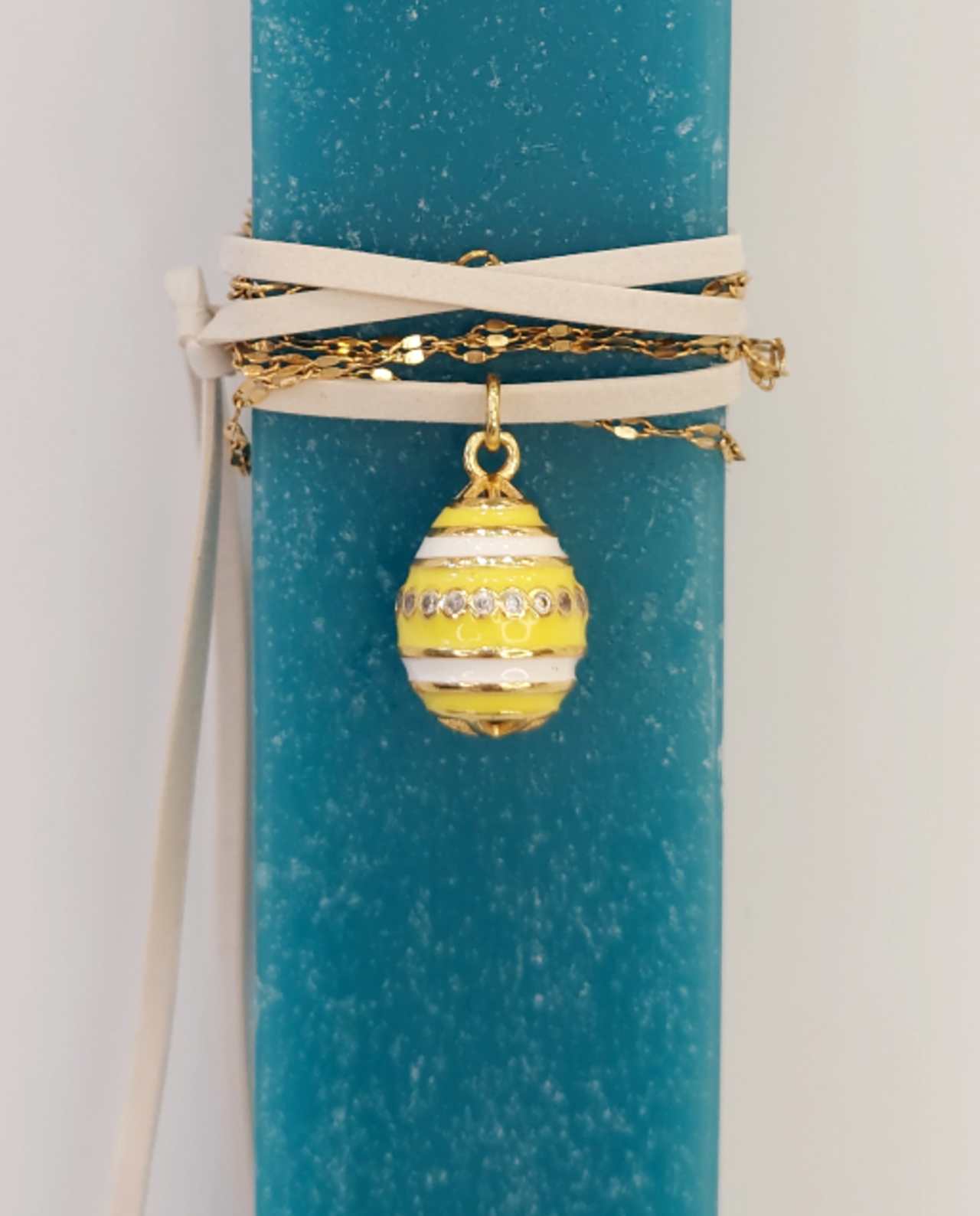 Χειροποίητη Πασχαλινή λαμπάδα από κερί υψηλής ποιότητας διακοσμημένη με εξαιρετικό κολιέ αυγό από σμάλτο με μοντέρνο design.