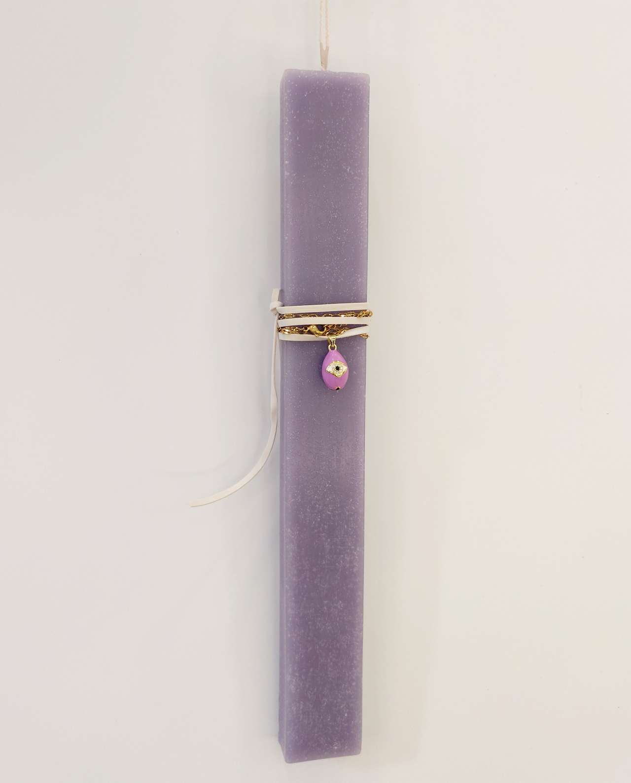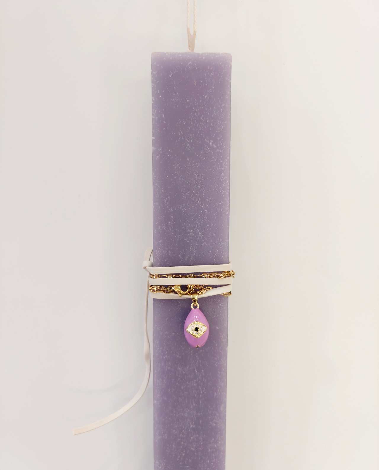 Χειροποίητη Πασχαλινή λαμπάδα με κερί υψηλής ποιότητας στολισμένη με κολιέ αυγό μάτι.