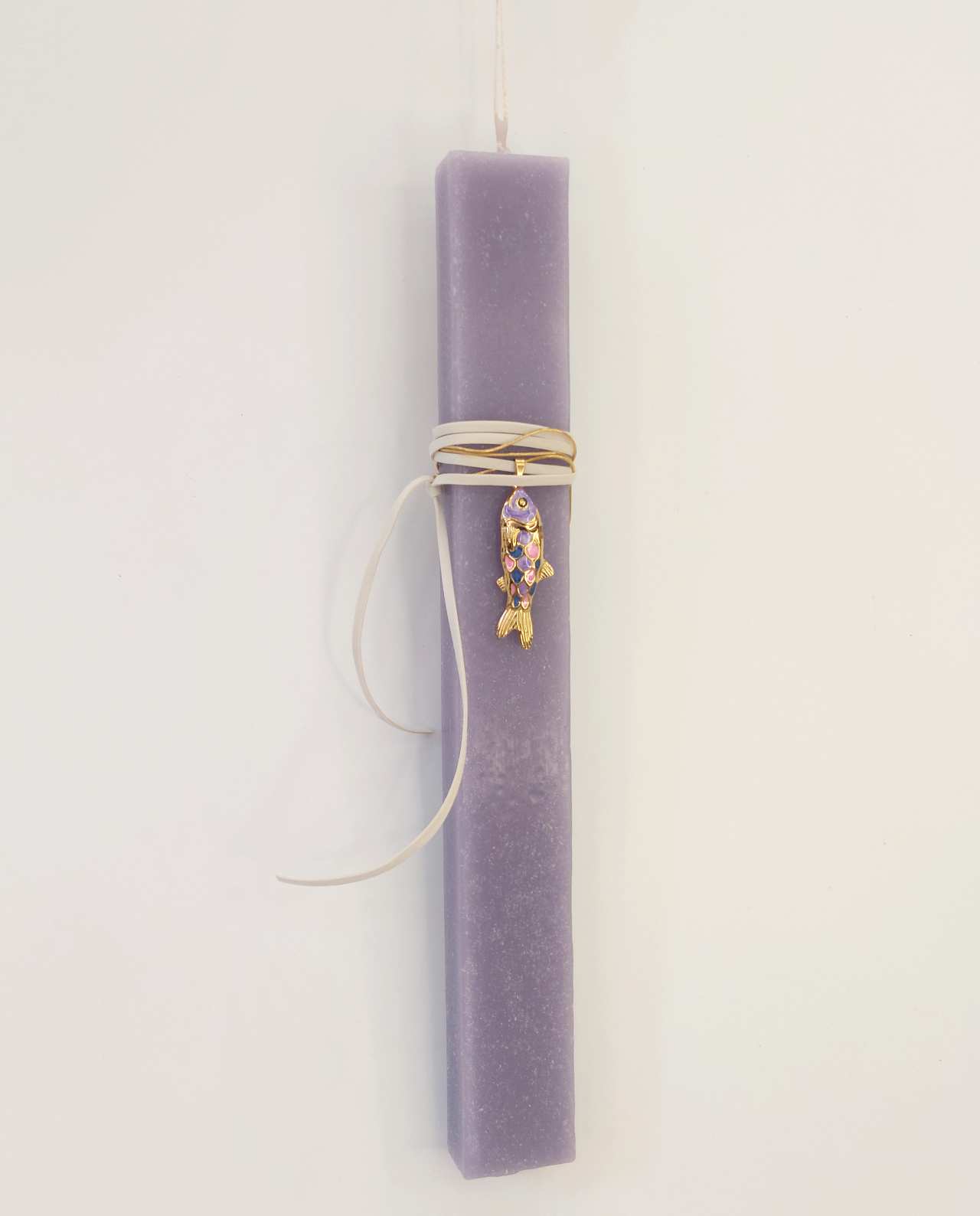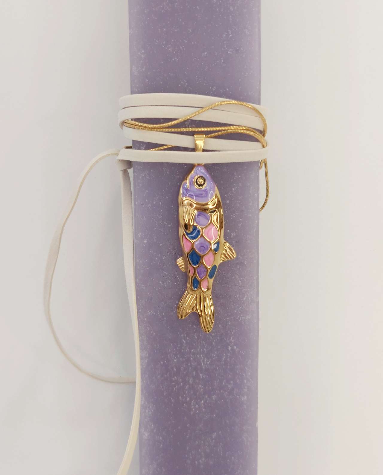 Χειροποίητη Πασχαλινή λαμπάδα με εξαιρετικό πολύχρωμο κολιέ ψάρι από σμάλτο.