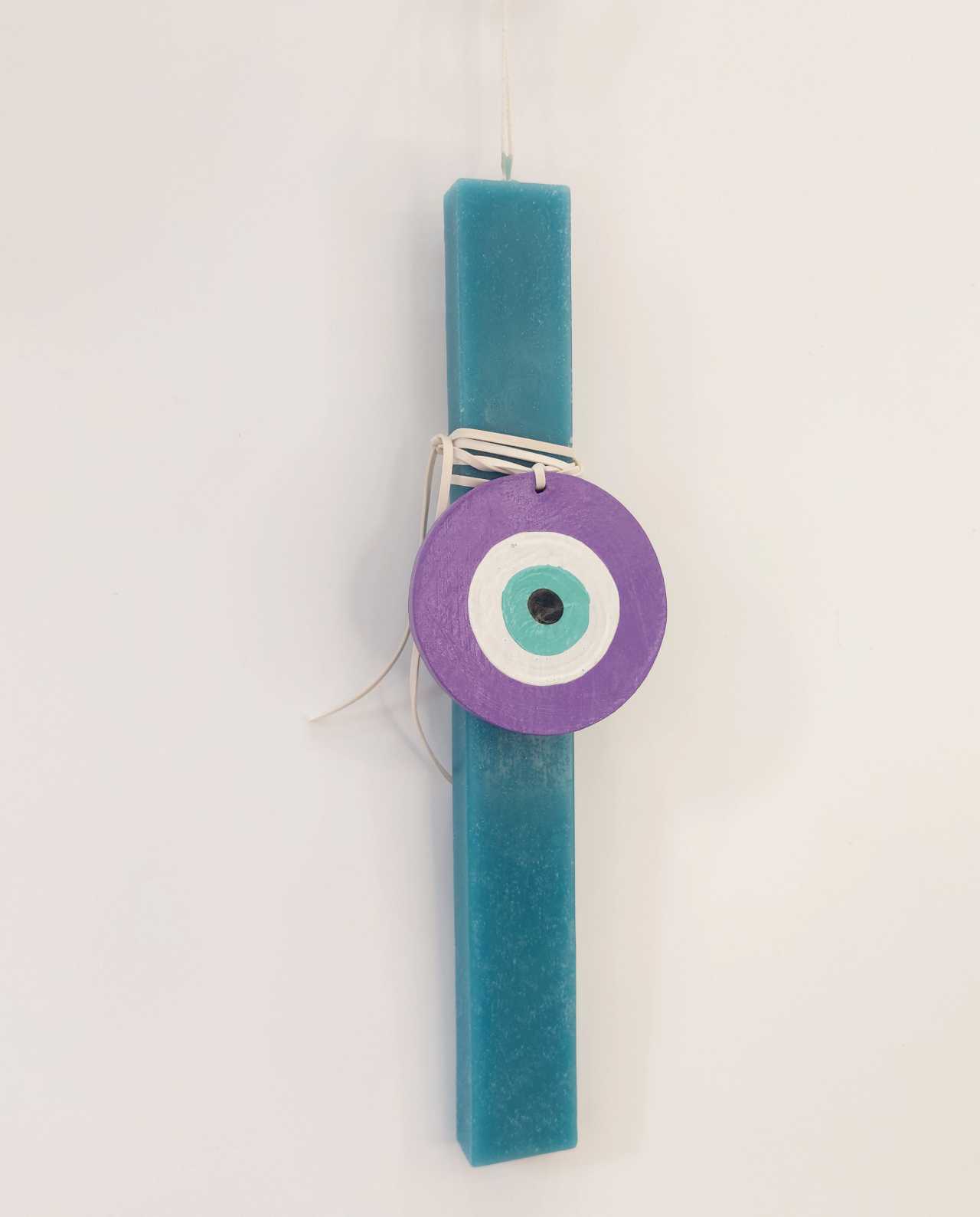Χειροποίητη Πασχαλινή λαμπάδα με 8cm χειροποίητο ξύλινο μάτι διακόσμηση τοίχου. Παραδοσιακή λαμπάδα νονού. Χειροποίητο ξύλινο φυλαχτό προστασίας για διακόσμηση.