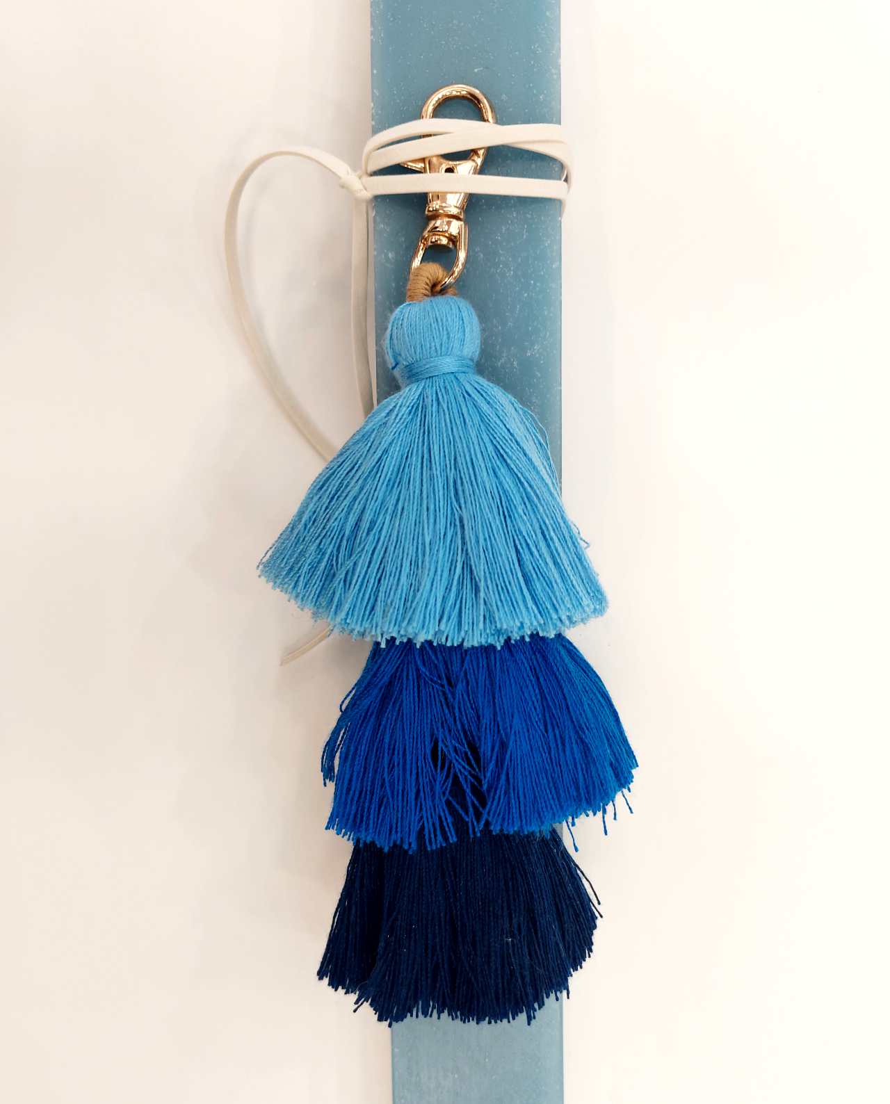 Πασχαλινή Λαμπάδα Μπλε Φούντες Μπρελόκ