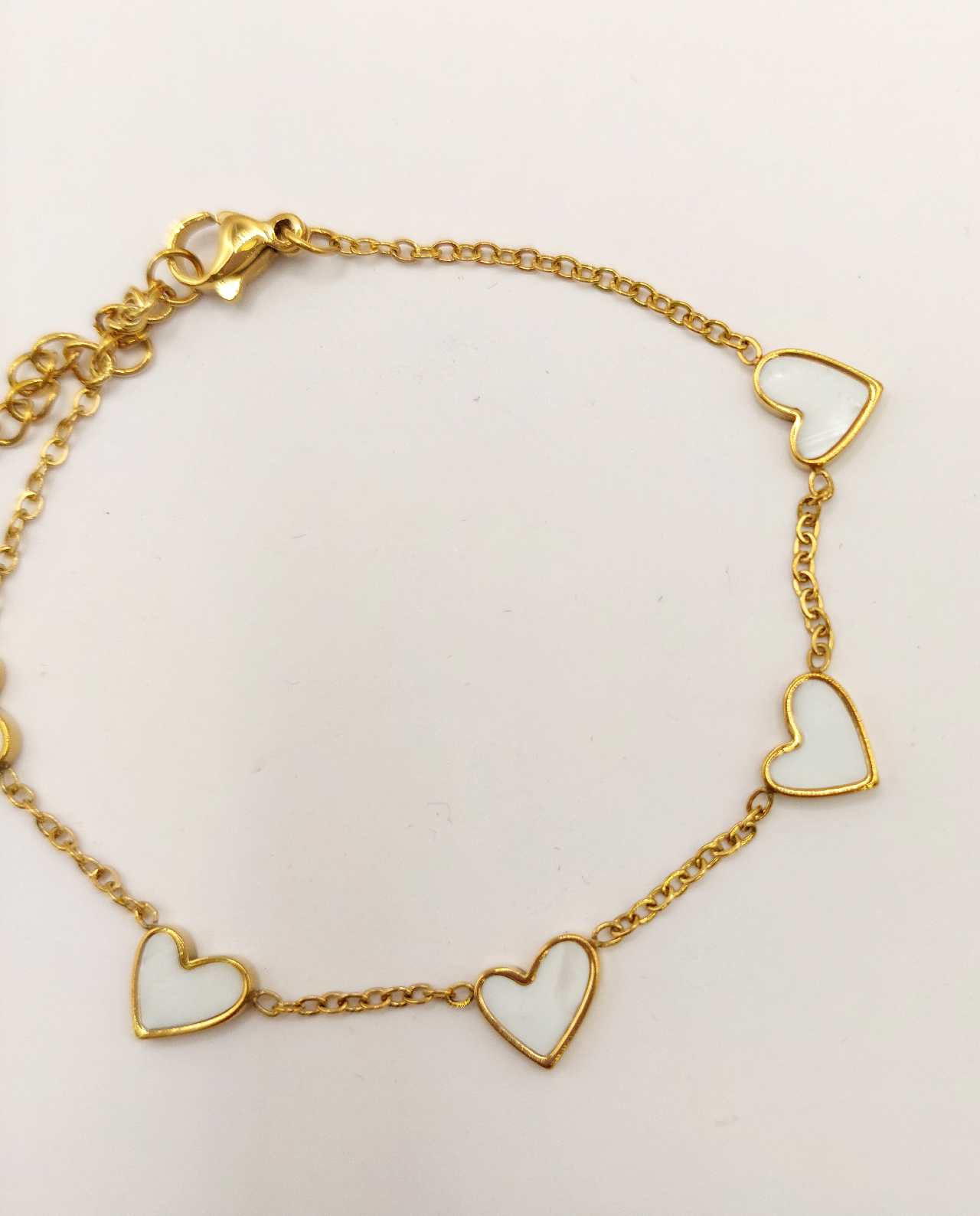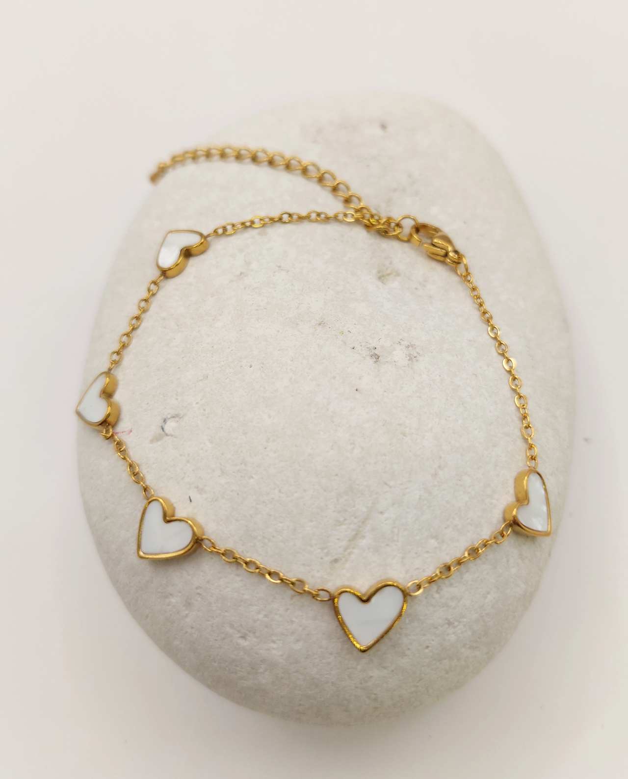 Βραχιόλι Καρδιές Άσπρο Σμάλτο