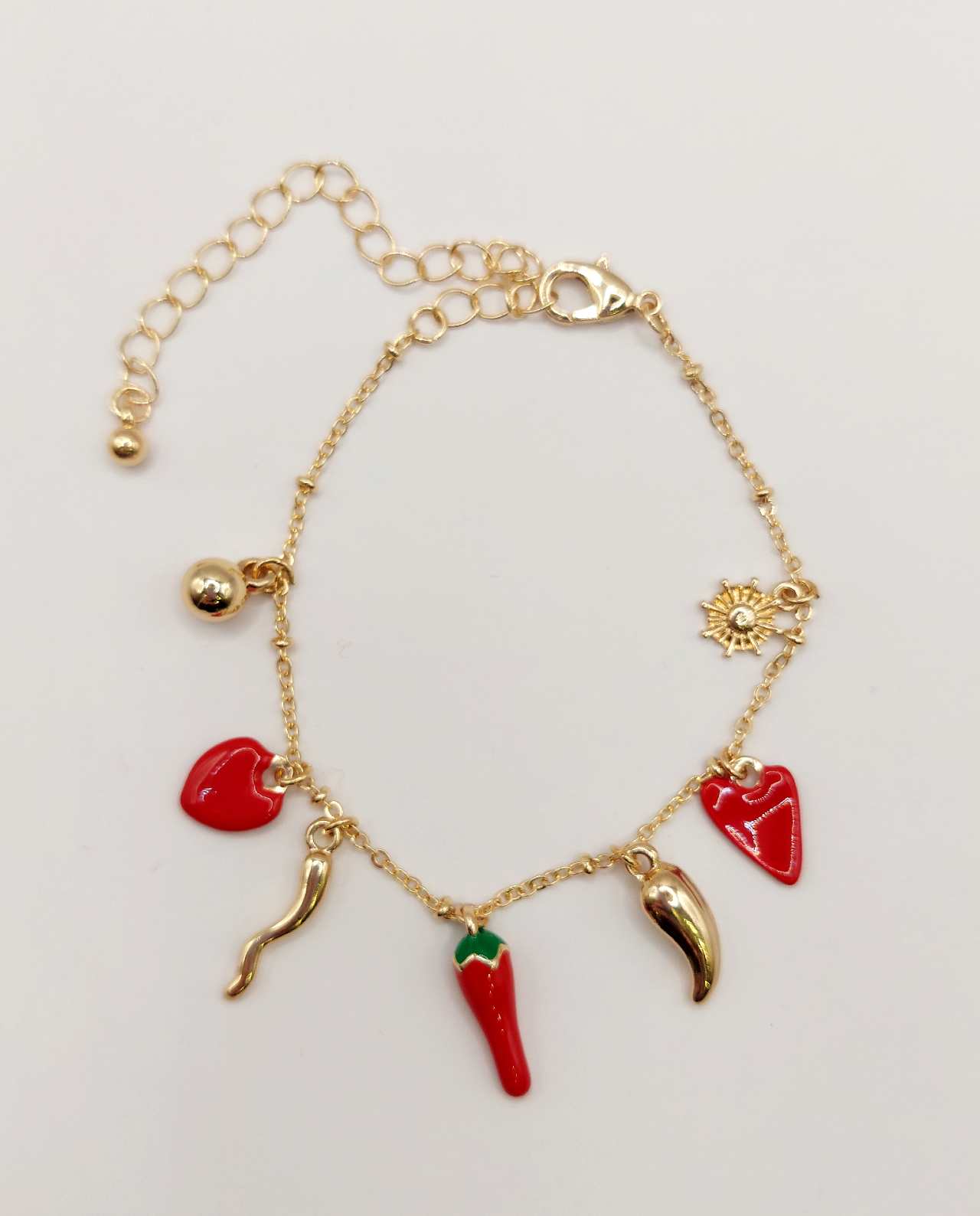 Εντυπωσιακό βραχιόλι με πολλαπλά peppers & καρδιές charms Χρυσό σχέδιο για εντυπωσιακή λάμψη. Μοναδικό δώρο για τους αγαπημένους σου.