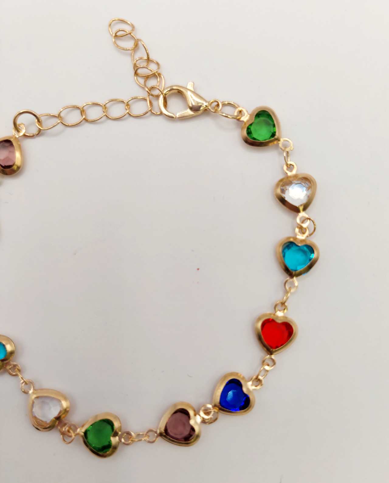 Βραχιόλι με πολύχρωμες καρδιές. Λεπτή αλυσίδα με ρυθμιζόμενο κούμπωμα. Τέλειο δώρο για αγαπημένο πρόσωπο. Κομψό minimal design.